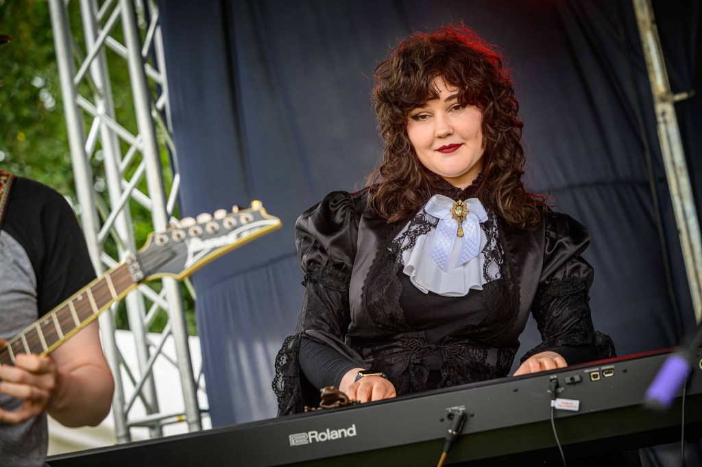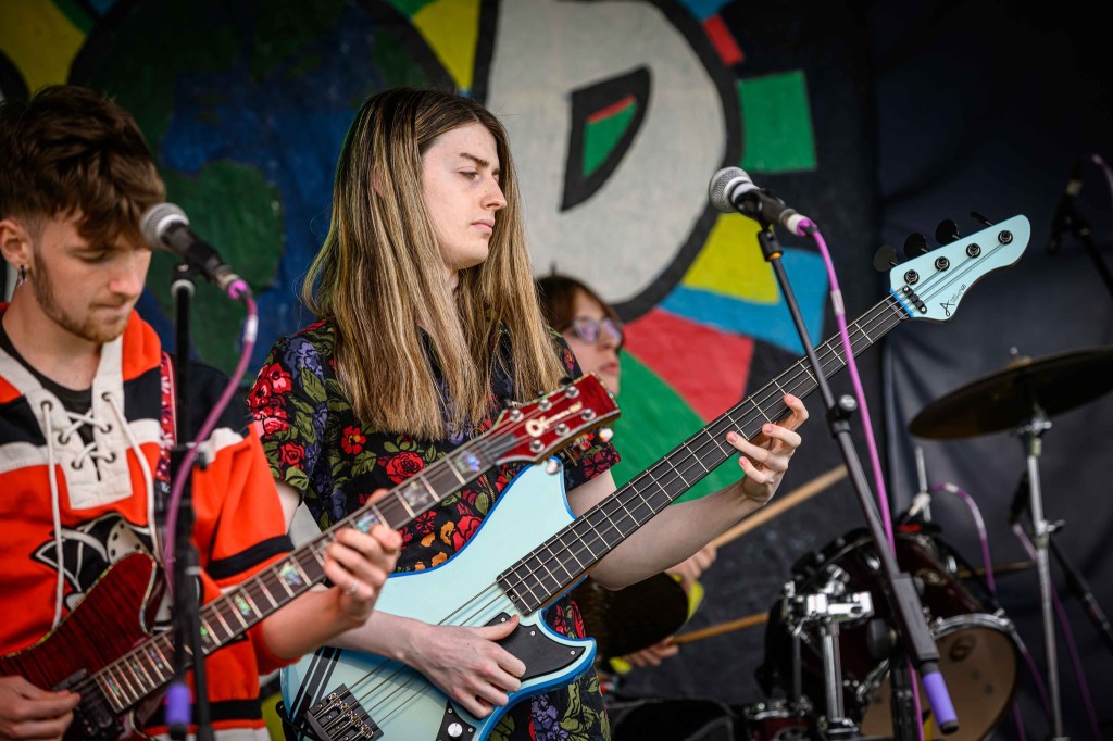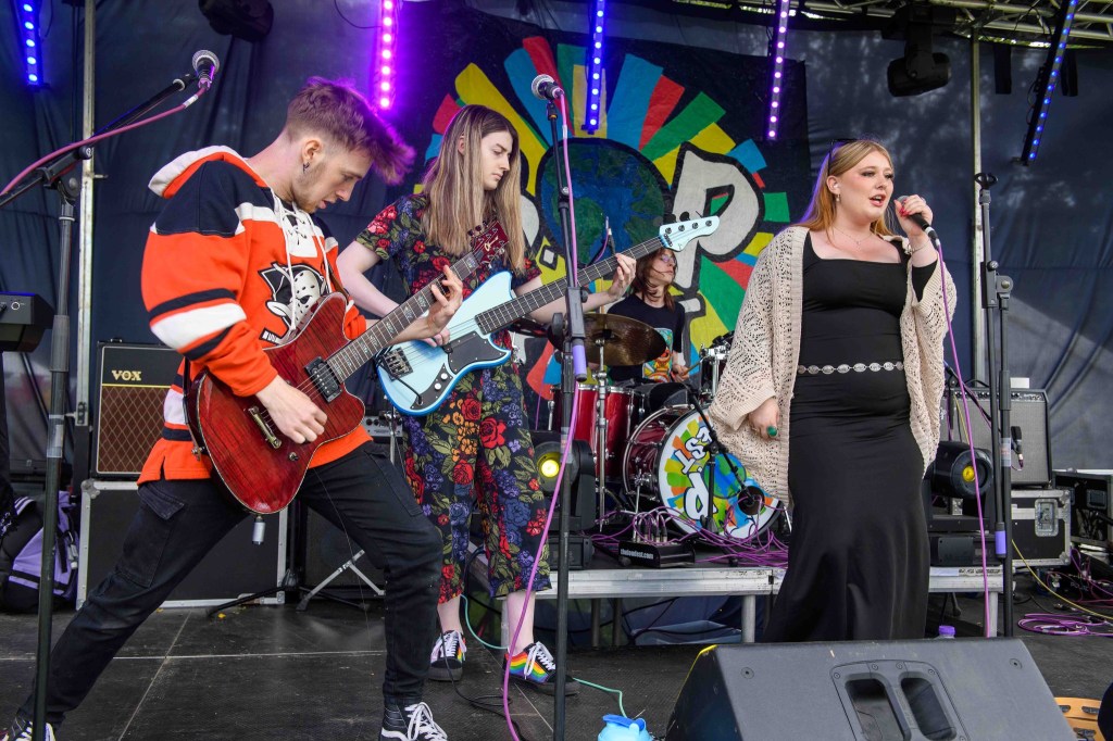 Marcia plays bass guitar and sings backing vocals for Jazzy Dystopia.
